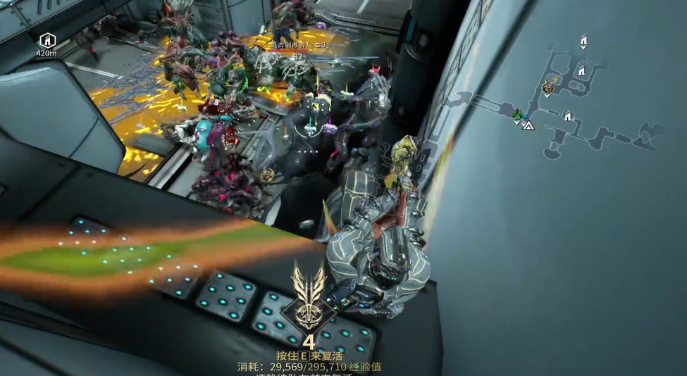 当队友无法及时抵达,或当前战局已陷入全面劣势时,玩家可启用自我复活功能。每名战甲在单次任务中拥有四次自我复活机会,每次使用将消耗当前任务中累计获得的经验值。触发后角色立即恢复站立状态并重返战斗,属于关键节点的应急保底手段。