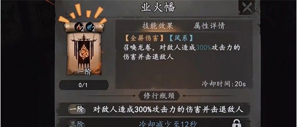 业火幡(必须六阶):这套玩法的“灵魂天书”,六阶后触发30%概率击飞目标。不管多“肉”多免控的怪,被击飞后都得乖乖吃控,这机制太绝了。