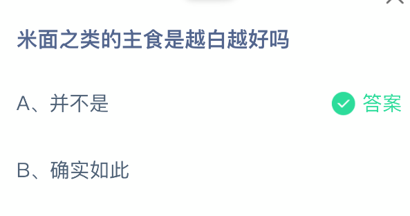 以上就是米面之类的主食是越白越好吗?支付宝蚂蚁庄园2026年3月6日答案最新,更多相关攻略,请关注3dm手游网更新!