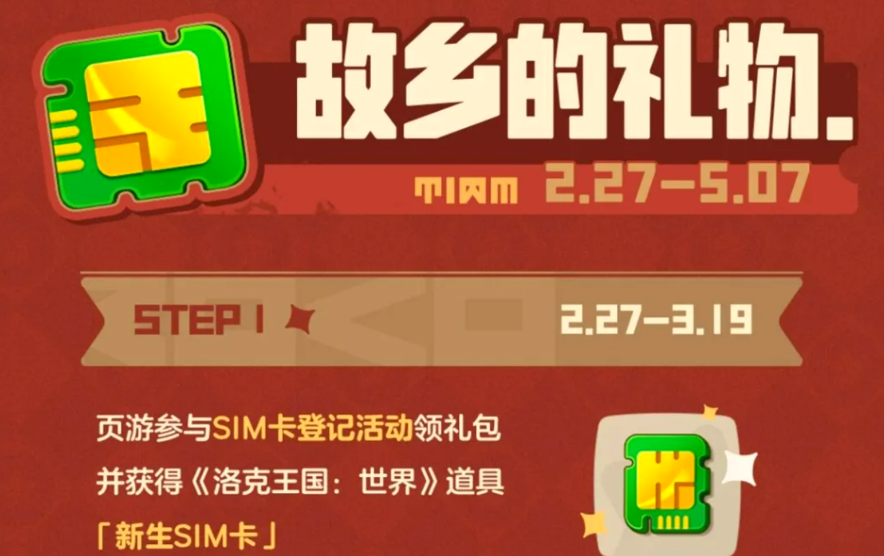 另一个活动叫"故乡的礼物",2月27日开始,同样到5月7日结束。页游里面完成SIM卡登记,就能领到礼包,礼包里包含一张洛克王国:世界用得上的道具,叫新生SIM卡。拿到之后在洛克王国世界完成注册,通过游戏内邮件领取道具,做完对应任务就可以拿到记忆中的肤色和头像奖励。还有一个额外的点,激活SIM卡之后可以分享给最多10位好友,好友也能拿到奖励。也就是说,就算从来没玩过页游,通过新作那边一样能参与这部分福利,门槛不高。