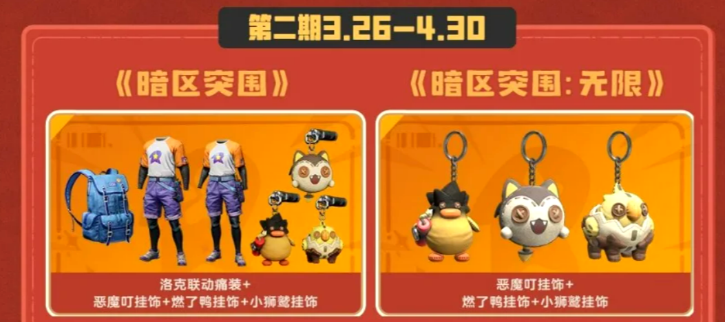 联动部分,好多人应该没想到,洛克王国这次联动的对象是自己家的另一款游戏,暗区突围。活动分两个时间段,第一段3月3日开启,第二段跟着新作公测一起,3月26日上线。完成活动任务可以获得游戏道具,暗区突围里,还能穿上小洛克相关的外观,两个风格差这么远的游戏凑在一块,看着挺有意思的。