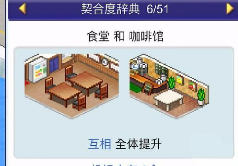 店铺等级上来之后,机场周边还可以开其他类型的铺子,不同店铺之间也有联动提升的效果。比如咖啡店这边,可以配合自动售卖机或者便利店一起开,这样整个机场区域的人气会往上涨,带动的不只是一家店的收益。