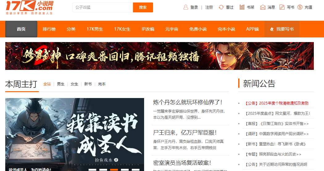 17k小说网登录入口:https://www.17k.com/
