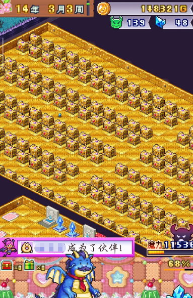 此外需关注设施可持续性:当现有设施数量不足时,可通过“轮回”功能重置资源配额,重新优化整体布局;若怪物箱库存告急,可临时替换为“纪念品店”,在维持基础金币收益的同时,同步支撑怪物培养进度。