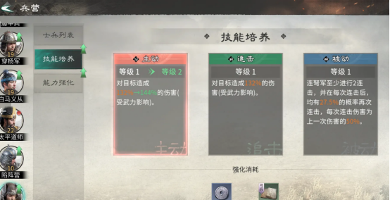 士兵的培养和相应的管理也是非常关键的,在相应的管理界面提供解散功能,可以一键选择没有任何特技的士兵进行解散,即便你包含的士兵属于绝世品质,如果没有任何特技技能通常都有着极低的价值,低于具有特技传奇品质的士兵解散之后。够所获得的强化材料,有助于培养高价值,相应的单位。在具体的培养方面,前期优先提升士兵的技能等级,因为同数量训练心得消耗下技能等级的提升能够明显与能力的强化。在具体的能力强化优先级方面也很关键,技能培养达到相应的进度之后,转向能力进行全方位强化。