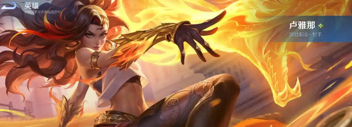 卢雅那是3月5日上线10V10的连珠射手,后期强势,技能自带穿墙。被动强化普攻并减一技能CD;一技能加速翻墙提升机动;二技能远程消耗减速;大招核心致盲1.5秒,让敌方普攻失效、飞行物偏移。致盲效果使她在发育路对线极具优势,操作简单易上手。