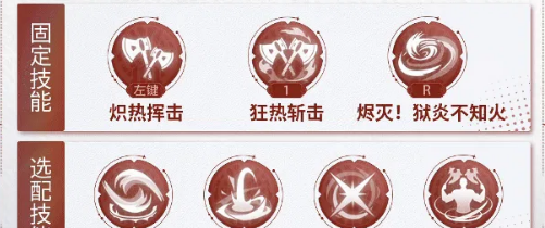在技能搭配方面有几个是固定的技能,炽热挥击是基础的攻击手段,狂热斩击是这个流派的特色,大招叫做烬灭狱炎不知火,听名字就感觉伤害很高,在选配技能方面,强烈推荐迷狂炎舞,这是快速攒资源的要点,另外无羁坠星也是个不错的选择,如果喜欢那种行云流水的感觉,可以带上如川流华斩。