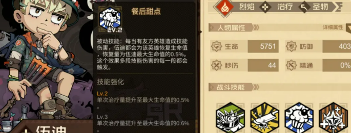 治疗位推荐伍迪。伍迪的被动是队友每段技能伤害都能触发回血,沙拉曼和薇薇安技能触发次数这么多,配上伍迪基本上血量能一直撑着。他的自动技能还能给全队提供大量增伤,和这套阵容配合起来非常顺手。伍迪回响推荐治愈大师,强化他的治疗能力。