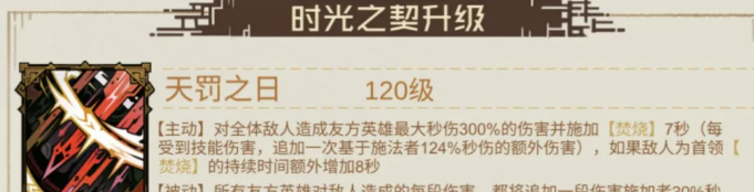 先从天罚之日说起,这是整套阵容的核心装备。它的被动效果是每段伤害,都能额外提升固定的秒伤倍率,每触发一次加30%。主动技能对每次技能伤害有124%秒伤的增幅。听起来单次加成不算很夸张,但重点在于叠加次数。