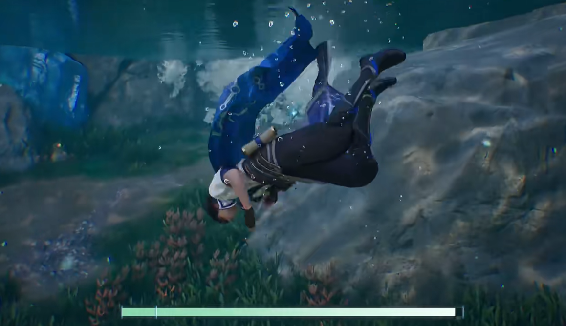 水下潜行机制与战斗系统的融合很棒。玩家到水里之后将会遇到栖居于此的生物或者强有力的敌对势力,只有娴熟地使用潜行技、闪躲、组合技能等手段才能够摆脱困境。部分角色在水中会获得特殊的技能,在水中有目标会移动的变慢,与水有关系的攻击会变强等,使玩家可以在环境改变时对行为进行改变。团队副本模式下,成员可以借助明确的分工和协作来提高探索速度以及战斗的胜算,很好地体现出了开放世界角色扮演游戏里社交互动的核心意义。