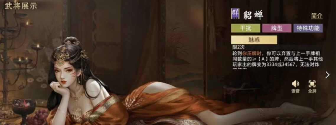 三国百将牌貂蝉技能机制分享:貂蝉虽不直接输出,但可通过即时干扰掌控局势,是团队中不可或缺的控场核心。其技能兼具威慑力与战术深度,在多人对战中能有效打乱敌方部署、为队友创造进攻窗口。