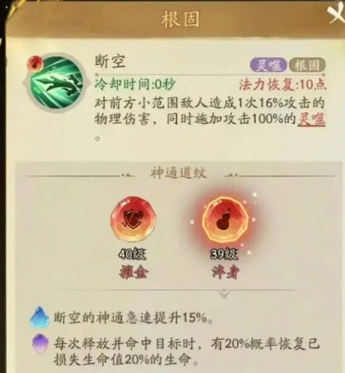 1、不大氪的玩家首先看自己玄通道纹(也就是第二行的技能),回天系列红色真炎,穿云系列狱炎,裂地崩系列用业火,这三个抽到哪个红色的就用哪个就行,神通跟法宝就以这个为中心进行搭配就行。