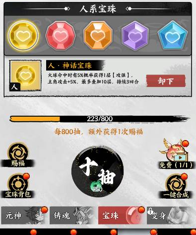 1. 宝珠分为三种类型,分别对应界面中三个巨大的石碑:天之碑、地之碑、人之碑。