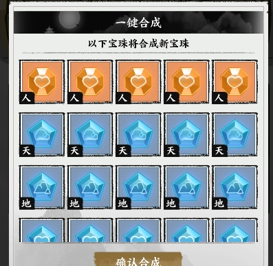 示例:用5个白色的“天”部位宝珠,就能合成1个绿色的“天”部位宝珠。
