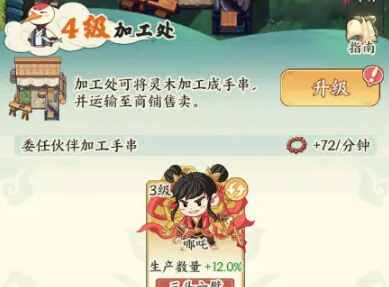 建议大家在移动建筑物时,就需要把它们全放在一起,那么后期在采集资料时就不需要来回跑,效率是比较高的。采集过来的材料送到加工处就可以二次加工,例如灵木就可以直接做成手串,加工好的成品就可以送到商铺。在经营的过程中,每一个伙伴都有专属的经营技能,制造的属性也是有区别的,所以大家在移动建筑物的过程中,不要随意的分配。就拿哪吒来说,他的三头六臂在加工处就可以生效,能有效提升手串的生产数量,就是一个加工奇才。