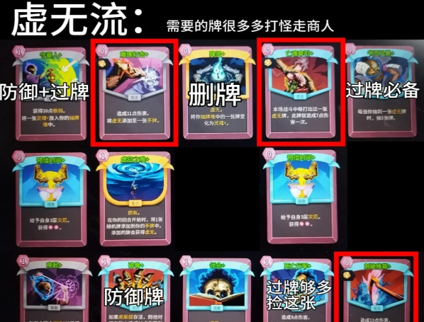 3、虚无流:需要的牌巨多,好处是自带删牌,不用着急去商店删