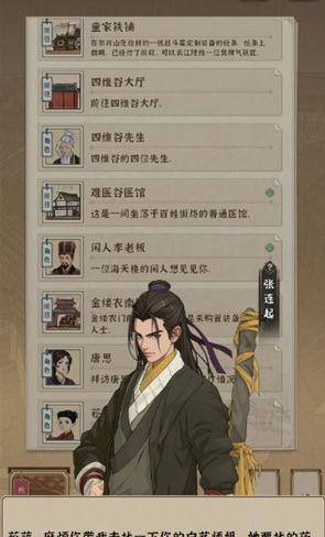 3.这里是重点,问松林完事了之后,点寻鹤生的徒弟,然后点第一好像是看看他们的师傅?然后这个徒弟要救他们师傅寻鹤生,你就接任务,给他徒弟药,5个药材,一个高级药,寻鹤生救活了,对话寻鹤生,然后给你药方,有了这个药方你在去找药童,然后方白芨就能招募了。
