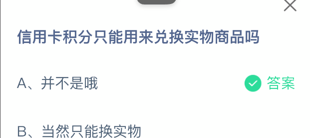 以上就是信用卡积分只能用来兑换实物商品吗?支付宝蚂蚁庄园2026年3月14日答案最新,更多相关攻略,请关注3dm手游网更新!