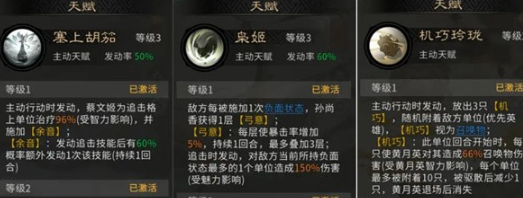 队伍的战斗逻辑是比较清晰的,就是靠三人技能联动去打连锁爆发。开局蔡文姬可以先放一个塞上胡笳。不仅可以给孙尚香补充血量,而且还可以上一个语音效果,让他有多一次追击的机会。孙尚香在追击时就可以直接触发枭姬,可以精准的锁定敌方负面状态最多的单位,可以打出高额伤害的同时,还会有60%概率去连击。如果有余音buff,那就可以再加一次追击一整套下来伤害就直接拉满。