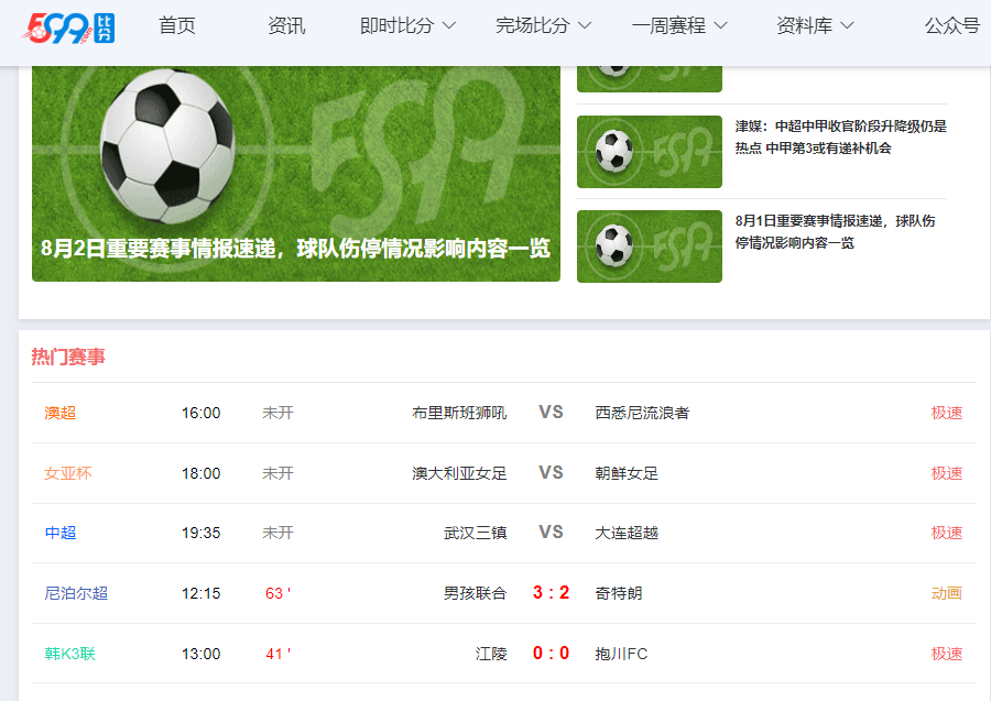 599比分是一款专门为广大提供足球赛事资讯的工具,实时查看相关的比分,并且能够开放论坛让大家发表自己的意见。下面给大家带来了599比分官网入口分享,有需要的自行查看吧。