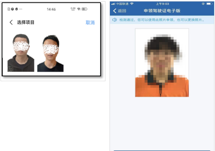 (一)相册选择:即驾驶人可以从本人手机相册中选择符合要求的6个月内彩色正面免冠照片进行上传;