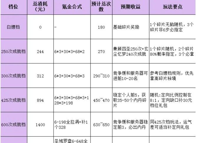 三、各档位氪金推荐