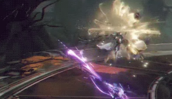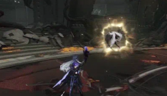 最后还有一个翅膀强化的技能,她会连续发动两次可以拼刀的攻击。第一次拼完之后不要放松,第二次紧接着就来了。成功接住第二次之后,她会借着反弹的力道往后飞,同时射出能量光弹。这个光弹也是可以拼刀的,接住之后就能把她打落下来,算是一个反击的机会。