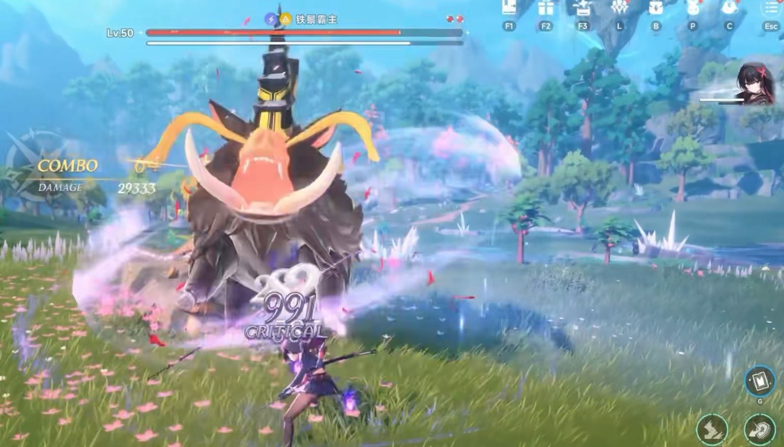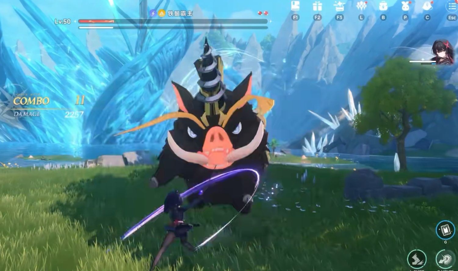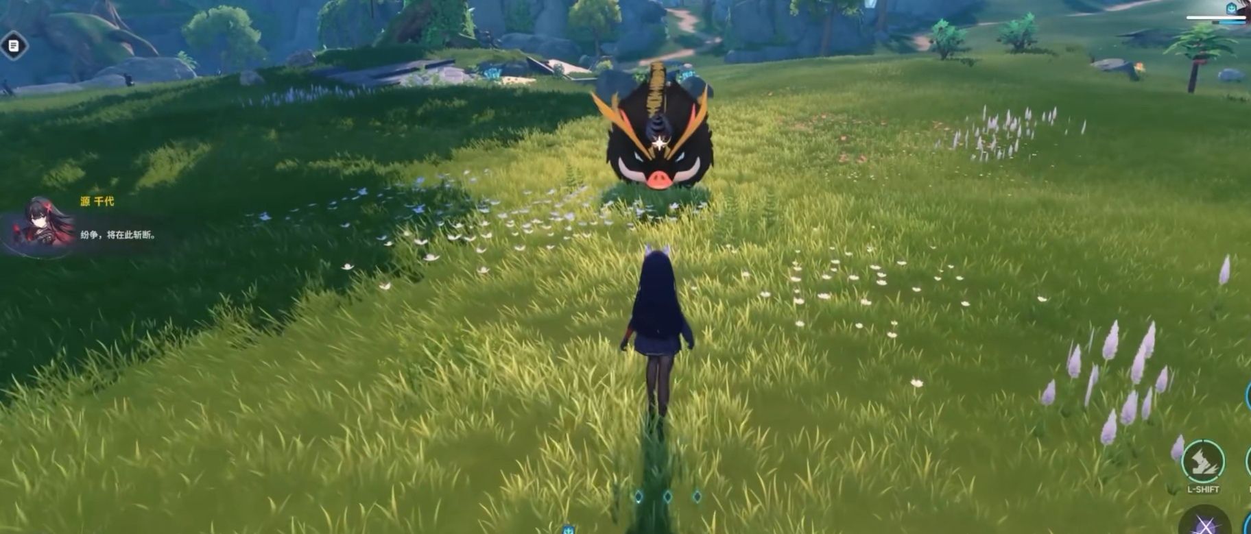 恰好源千代是一位暗系输出,她的普通攻击都具备着高倍率斩击特性,配合上流火区域是能够提升释放倍率,满段普攻后可以非常顺滑地衔接上连击,对于BOSS是非常强劲的打击。在铁鬓霸主的第一阶段,源千代只要使用【星鸣斩】这一拔刀技能进行多段攻击,此时,如果看到地面上有电圈的话,马上接入二技能,这个是位移技能,可以在闪避的同时对野猪造成伤害,并叠加上【减速】的DEBUFF,还有一定概率给自己减伤,基本上这样一套操作下来就能打完第一阶段。