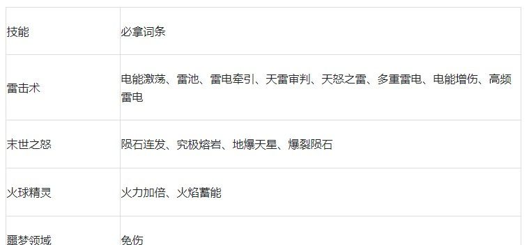 搭配说明:所有技能前期就送,【雷击术】有着不错的追踪效果,拿到【电能激荡】、【天雷审判】后伤害很高,配合【末世之怒】可快速完成清怪,【火球精灵】提供的灼烧快帮【雷击术】触发雷池效果。【噩梦领域】提供续航。