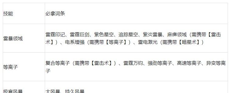 注:核心技能【雷暴领域】至少要升到2级后再使用本流派。若玩家已经解锁了【暗星术】,可用它来替换【极寒风暴】,同时词条必拿【雷电激光】。