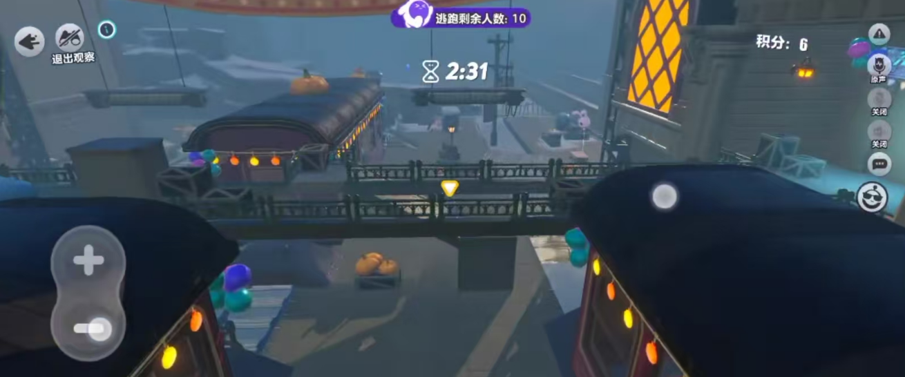 火车车尾的告示牌也可以去躲藏,操作是很简单的,只要掌握好跳坡的技巧,那就可以轻松的上去。站在公示牌的上面,可以选择去躲避下面南瓜的搜索,而且还可以随时去观察周围的情况。在发现危险之后还可以迅速的跳下来,然后去转移阵地,对于那些喜欢躲藏的玩家而言,还是比较轻松的。不过需要注意的是,告示牌背后的墙是假的,所以千万不要贸然的去尝试。餐厅的边上有一个大灯的点位,这就比较合适去隐藏。跳上餐桌之后,然后点击一下跳跃键就可以跳到小型的木板上。