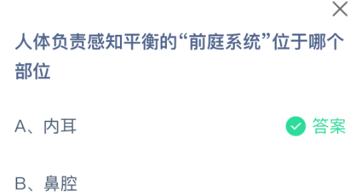 以上就是人体负责感知平衡的“前庭系统”位于哪个部位,支付宝蚂蚁庄园2025年12月14日答案最新,更多精彩内容,请点击关注更新!