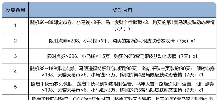 另外购买马年限定皮肤皮肤,还可以根据购买的数量获得额外奖励,如上图展示,送限时点券、头像框、小马钱等等。