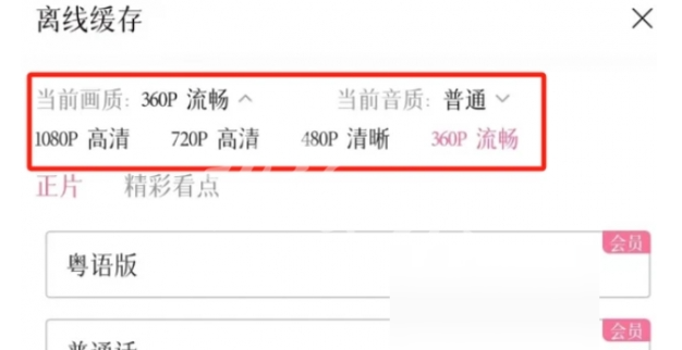 4、选择清晰度(标清、高清、超清等)和集数