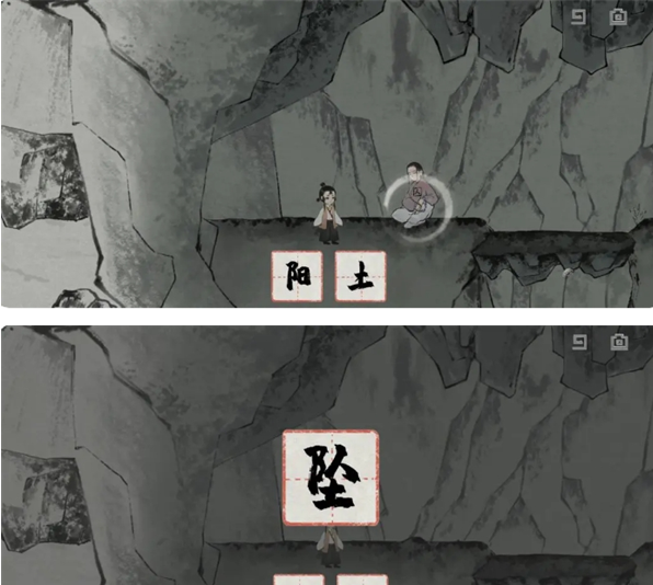 4、将“坠”字应用于石桥,触发机关后跳跃,继续探索。