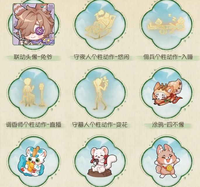 其中,特殊宝物具备双重用途:既可出售兑换金币,也可赠予联动角色(如兔爷、四不像、天禄、吐宝鼠等),触发专属剧情事件,呈现神兽群像的趣味日常互动;普通宝物则统一售出转化为金币,用于参与联动专属抽奖,奖池涵盖守墓人-兔爷奇珍时装、守墓人-究极胡萝卜奇珍随身物品、保安室主题家具、个人动作、头像框、线索以及碎片等多类道具。