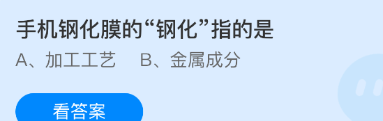 手机钢化膜的“钢化”指的是?支付宝小鸡课堂开课啦!每天花一分钟答题赚饲料,喂喂小鸡就能贡献爱心啦!轻松又意义十足!2026年2月13日蚂蚁庄园的小鸡课堂题目正确答案是【加工工艺】,手机钢化膜中的“钢化”并非指添加了金属成分,而是一种物理或化学加工工艺。