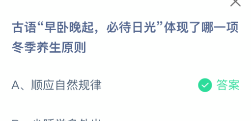 以上就是古语“早卧晚起,必待日光”体现了哪一项冬季养生原则?支付宝蚂蚁庄园2026年2月13日答案最新,更多相关攻略,请关注3dm手游网更新!