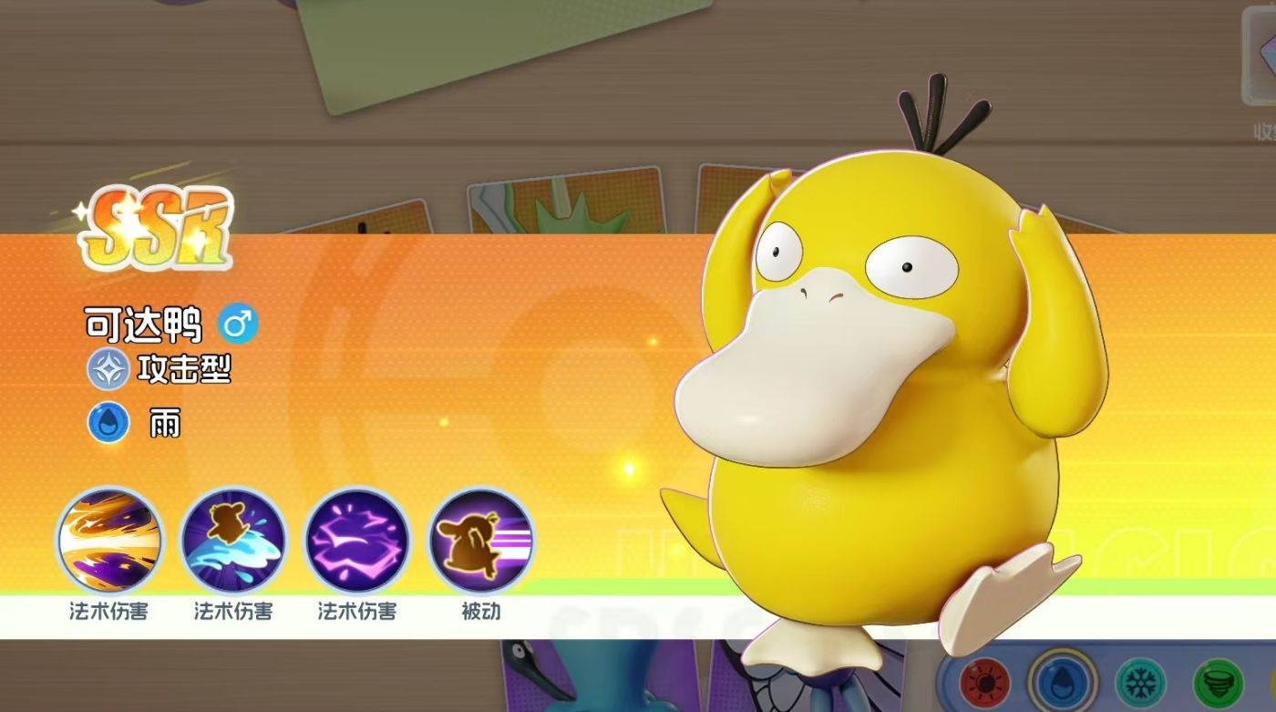 兼顾了输出与控制的可达鸭也是能玩家免费拿到手的宝可梦,它可通过被动和41级技能令敌人陷入无法动弹的状态,配合上大招的高爆发群伤,能稳定地在战斗里打出夸张的法术伤害。即便在被近身时,解锁了11级技能的可达鸭还可通过击退敌方来保护自己。