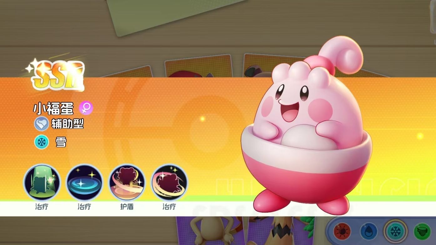 超强的治疗能力是小福蛋的特性,能极大地保证队伍的生存,而且它的大招除了能快速拉高己方低血宝可梦的生命外,还可让该宝可梦回复怒气,即便刚用完大招也能在短时间内再开启一次。41级后更是可通过对己方全体宝可梦施加护盾,进一步保障它们的生存,护盾还能提升宝可梦们10%的攻防。