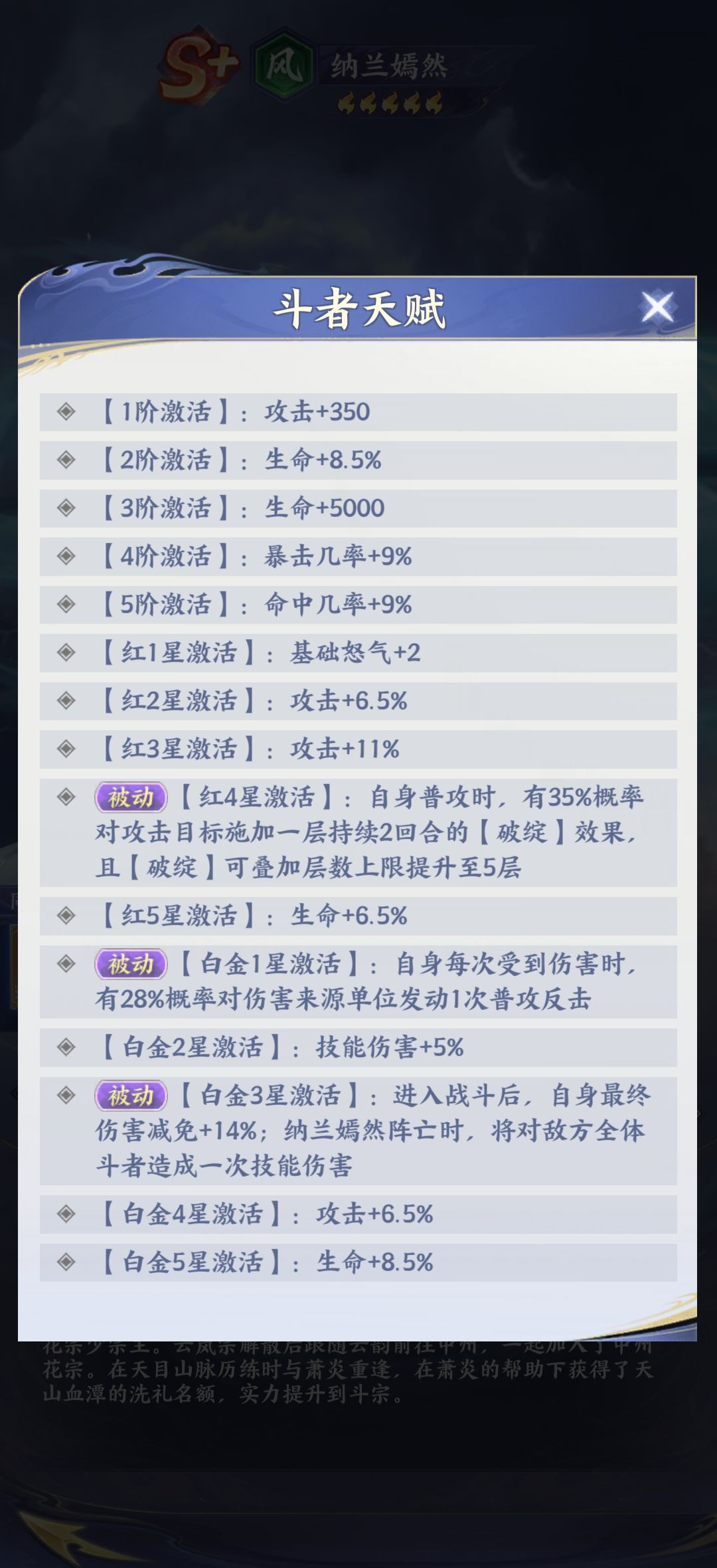 纳兰嫣然的天赋设计的比较全面,比如它具备输出效果,当然也能够满足生存条件。对于玩家来说,在整体的战斗过程当中,他其实是比较强大的输出,因为它能够拥有攻击生命等等基础属性的加成,一旦拥有了这些之后,他其实能够稳步的提升战斗力。
