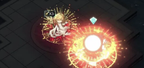 太阳神鸟的核心玩法,主要围绕被动技能光耀古今展开。当他处于天时往复状态时,周围几格内的敌人,只要被队友攻击后受伤,太阳神鸟就会自动消耗一枚礼弹进行追击,造成攻击力百分比的构素伤害,追击的同时还能叠加灿金状态。等灿金状态层数攒够了,追击就会附带额外伤害,如果这时候还开着四季同鸣,追击甚至能对受击目标周围的敌人,造成范围伤害。这种机制,让太阳神鸟在团队作战中的输出能力非常可观,特别是面对密集站位的敌人时,伤害会成倍增长。