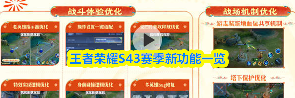 王者荣耀S43赛季将迎来多项重磅新功能与机制优化,涵盖英雄玩法升级、辅助机制革新、社交玩法拓展等多个维度,显著提升游戏体验。以下是目前已曝光的核心新功能汇总,具体大家可以来看看!