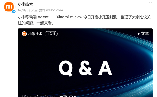 Xiaomi miclaw的封测并没有一个公开的网页入口,因为它采用不公开招募的邀请制。根据小米官方信息,本次封测仅面向科技发烧友和极客用户,且首批仅支持小米17系列特定机型。