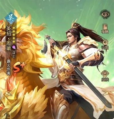 2、英招周瑜:法术输出+控制型武将,前期可选,获得难易程度相对较容易。技能有概率为敌方武将附加减速、禁疗。坐骑技能开场给自己和防御最高的武将增加冰盾,有概率降低敌方目标速度和冰冻敌方目标。