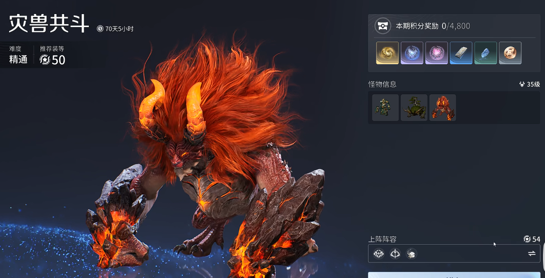 游戏的共斗副本目前数量还是比较少的,比较常见的副本就是灾兽共斗,该副本可以支持四个人组队,在组队之前,玩家们可以观察该boss的属性,这样就能选出克制的英雄进行挑战,这样能降低副本的通关难度。