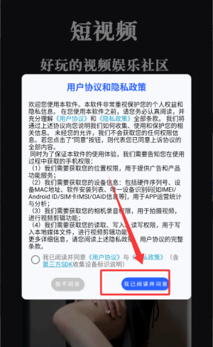 1、点击我已阅读并同意按钮进入。
