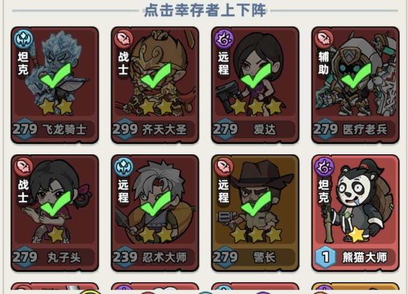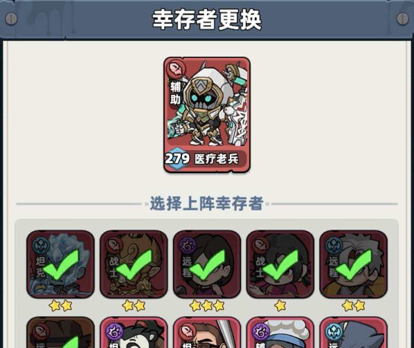 角色更换操作极为便捷:进入主界面后点击【幸存者】,再点击右下角【布阵】按钮,即可查看当前上阵阵容。任意点击某位角色头像,系统将自动跳转至替换页面;从底部幸存者列表中选取目标角色,确认后完成无损切换。特别注意的是,务必勾选【同步更换技能书】选项——该功能可完整继承原角色的主动技能与全部被动技能,无需重新搭配,大幅降低养成成本。
