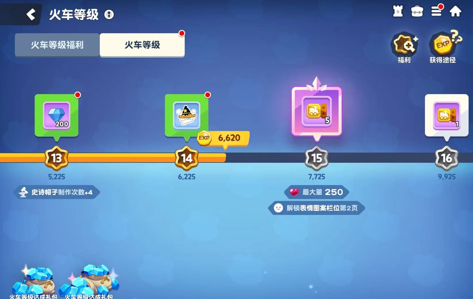 实际上游戏中除了爬塔外,还有很多其他途径能够得到升级经验,比如完成世界地图探索、讨伐战等等。每次火车等级得到提升之后,记得点击游戏主页面左上角头像去领取升级奖励,除了火车之外,松饼塔的升级也非常有必要,因为我们进行高层爬塔以及讨伐战的硬性要求就是松饼塔需要达到指定等级。