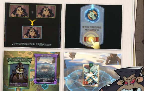 通过奖励、合成和训练场能升级伙伴,让他们在旅途中越来越强,从各种商人、圣光护佑、鸡尾酒特供等随机事件中,可获得增益效果,最后赢下奖杯意味着获得胜利,要是输掉会扣除信心,输掉的朋友可以更换花匠 、 铁皮人 、龙女主角重新开启挑战。